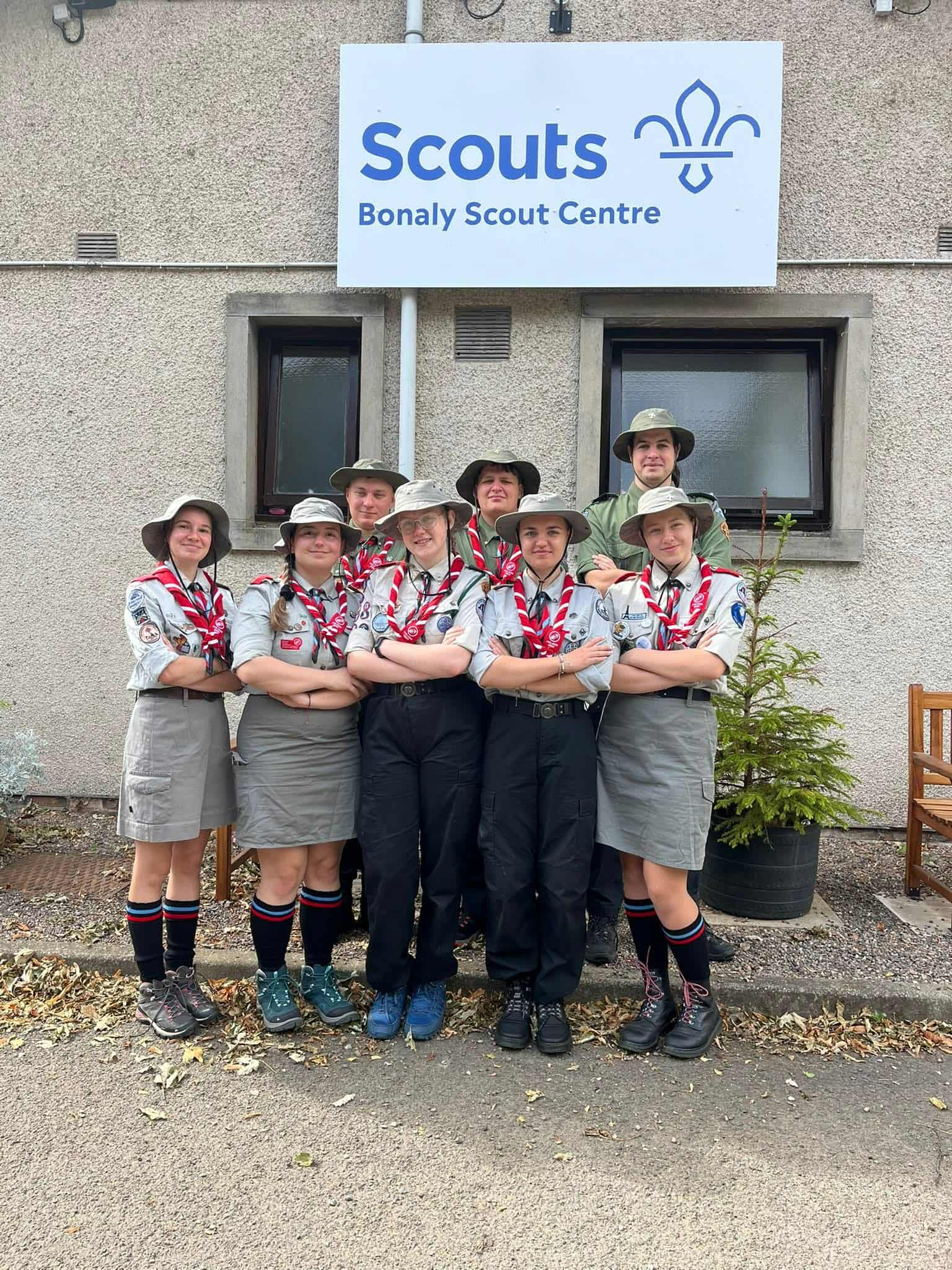 Zdjęcie przedstawia naszą drużyne na obozie wędrownym 2025 w Szkocji, Bonaly Scout Centre