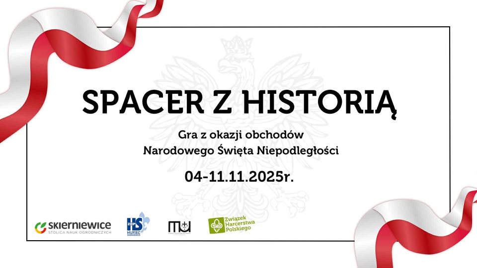 Komisja Historyczna Hufca ZHP Skierniewice serdecznie zaprasza na tegoroczną odsłonę gry terenowej z okazji Narodowego Święta Niepodległości - „Spacer z historią”.